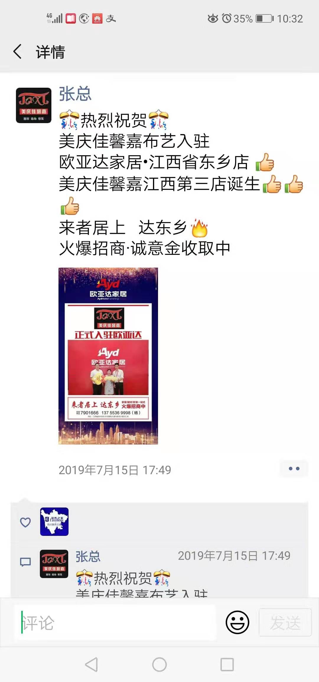 热烈祝贺:美庆佳馨嘉布艺入驻欧亚达家居-江西省东乡店